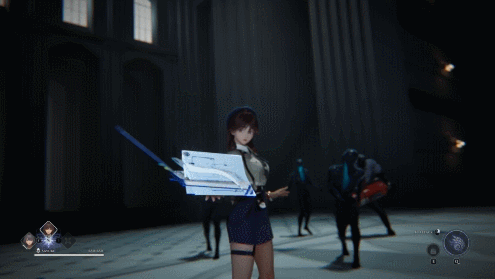 其中最明显的就是它在战斗方面的呈现。角色的动作明显没有米哈游过往产品的夸张感,显得较为克制,但又不失他们常有的那股中二味,比如拿手比枪、敬礼放技能等。