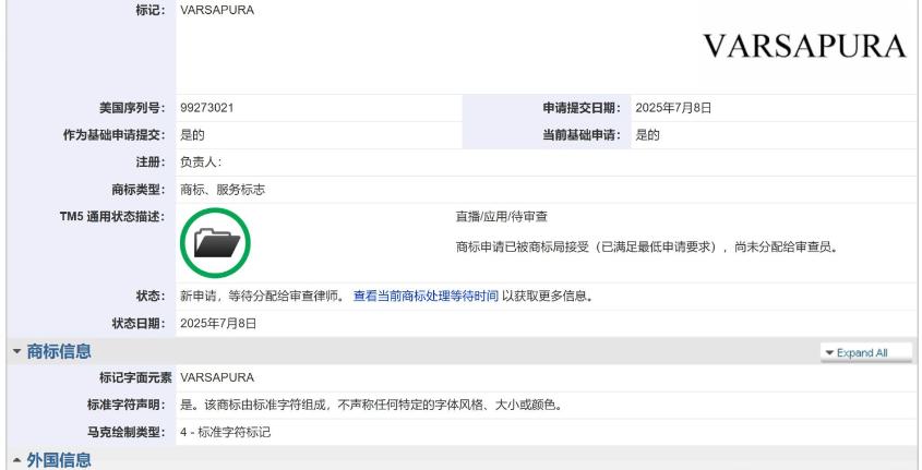彼时正是Varsapura提交注册商标,并创建诸多社交账号的时间点。